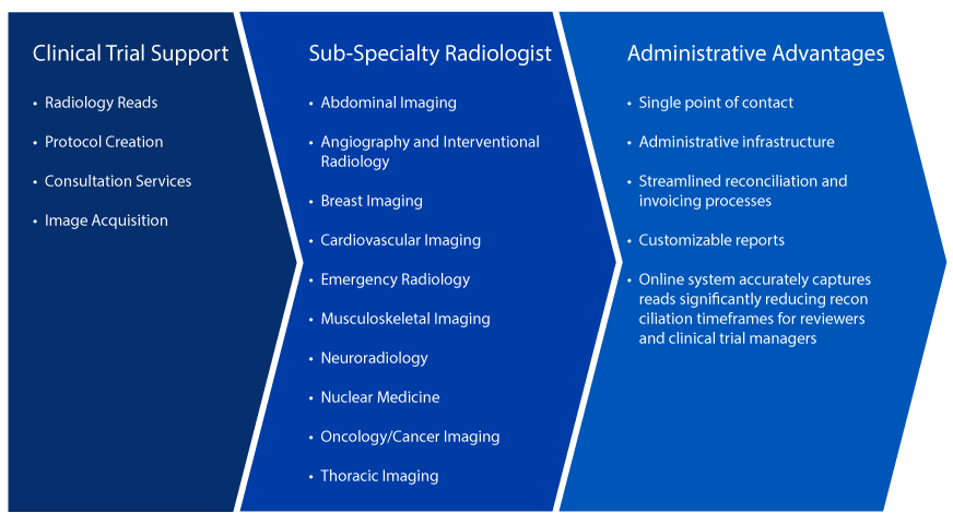 We are available to provide services to support clinical trials and other studies involving radiological imaging. Offering the expertise of world-renowned radiologists and PhDs to provide blinded reads and extensive consultative services for the benefit of your clinical trial. With over 20 years of clinical trial experience, our radiologists understand the unique needs of CROs and pharmaceutical companies, and are well equipped to handle even the most challenging of studies.